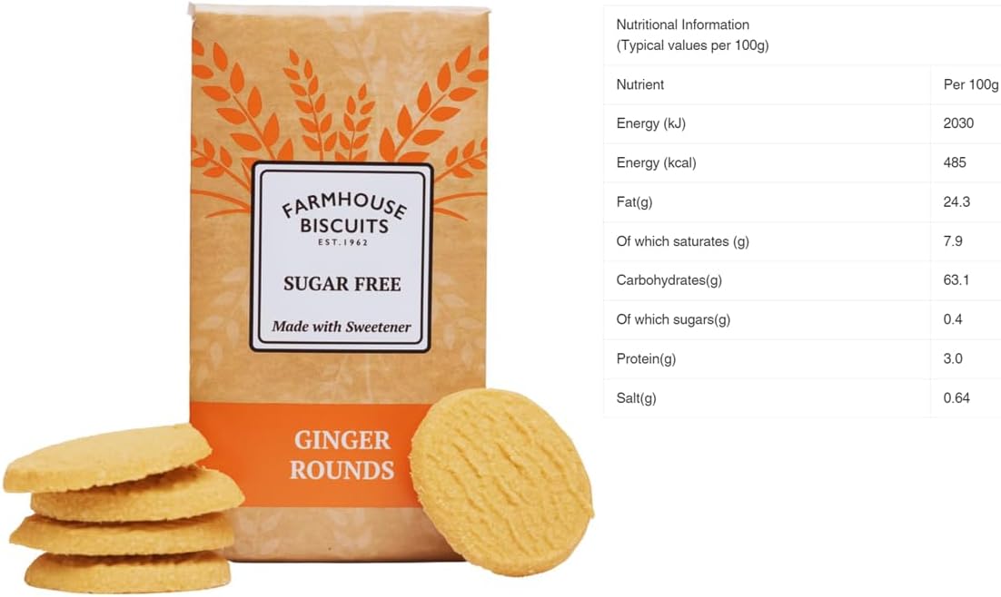 GINGER COOKIES-SUGAR FREE-A delicious biscuit with a zingy ginger taste, delivering a fantastic ginger punch. Perfect for diabetics or anyone who is trying to reduce their sugar intake.