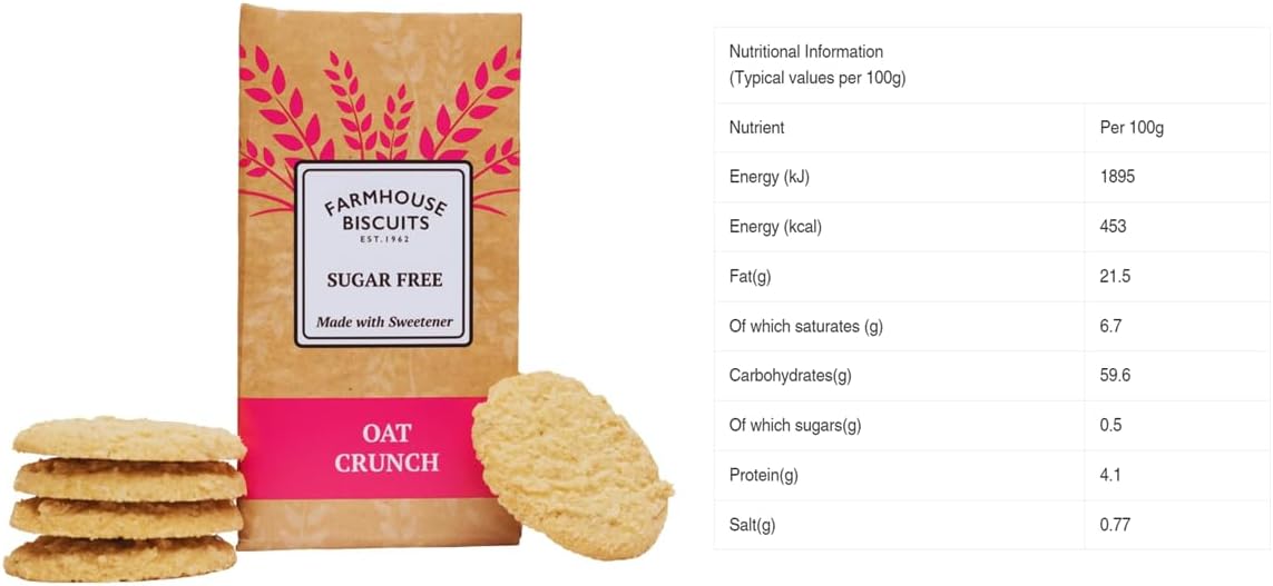 OAT CRUNCH BISCUITS-SUGAR FREE-A great oaty crunch and loved by everyone here at Farmhouse Biscuits, do you need an excuse? Perfect for diabetics or anyone who is trying to reduce their sugar intake